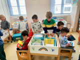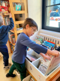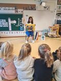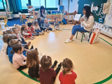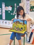 Vendredi 17 octobre les élèves ont profité de lectures soit en classe pour les plus petits , soit à la médiathèque pour les 3 autres classes. Avant d'écouter Nathalie lire, les élèves ont pu choisir un livre à emporter pour les vacances parmi une sélection variée . Bien installés sur un tapis ils ont apprécié les beaux livres "pop up" sur l'automne . Merci à Nathalie et Catherine!
