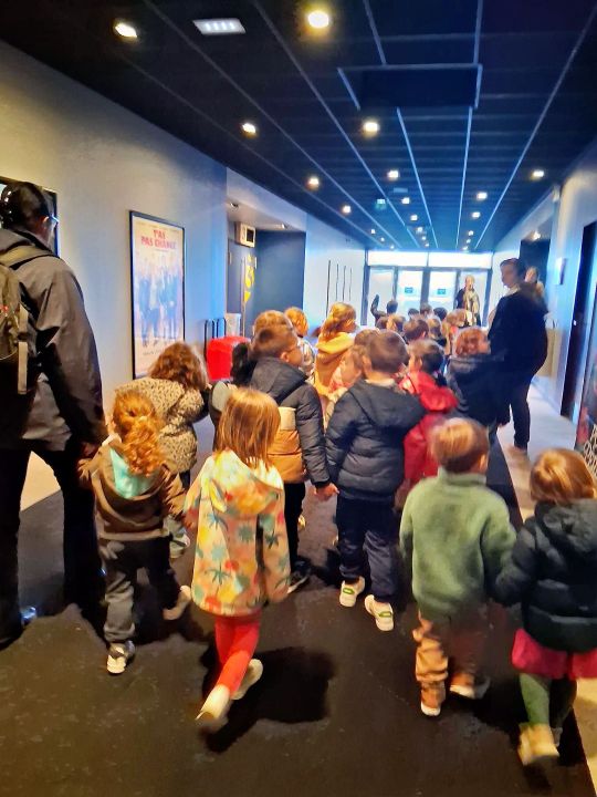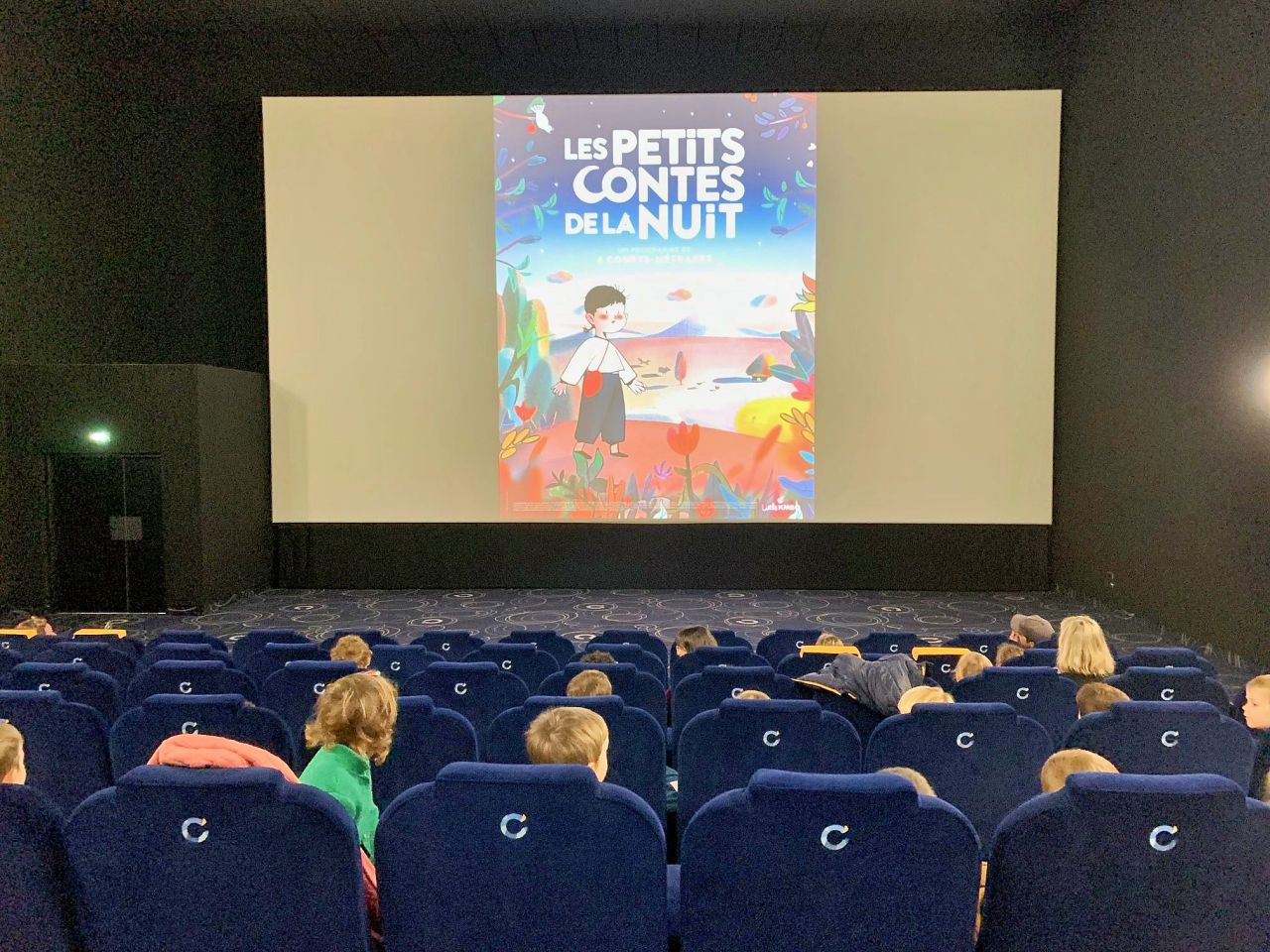 Jeudi 6 novembre tous les élèves sont allés au Cinéville de Pont-L'Abbé voir 6 courts -métrages intitulés " Les petits contes de la nuit" sélectionnés dans le cadre de la Maternelle au Cinéma. Après un court trajet en car, nos jeunes spectateurs ont pu profiter pendant 45 minutes d'un beau moment poétique rythmé de séances drôles et captivantes. Au printemps nous y retournerons pour le plus grand plaisir de tous!